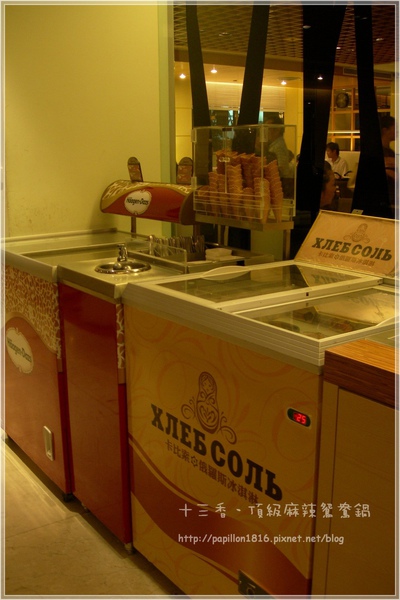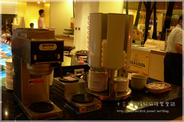 又是另一個讓我大心的區塊,十三香配備巧克力噴泉,讓我吃到有點膩、有點撐的時候,可以馬上玩一下巧克力噴泉轉換味蕾,巧克力噴泉除了一般的棉花糖之外,還有比較特殊的QQ熊軟糖可以選擇。另外還有還有全自動研磨咖啡機、各式茶包提供熱飲選擇,不過十三香的咖啡極普,要是對咖啡略有要求的朋友,可以跳過XD而對許多人而言的吃到飽重頭戲--冰淇淋,則有冰淇淋則有喜見以及俄羅斯卡比索冰淇淋可供選擇並且還有脆皮杯可以裝。去十三先用餐的男性同胞也有福了,因為這邊提供台灣啤酒喝透海,相當豪氣,不過似乎有許多人以為啤酒跟其他酒類一樣需另外付費,因此啤酒生意還算普普。