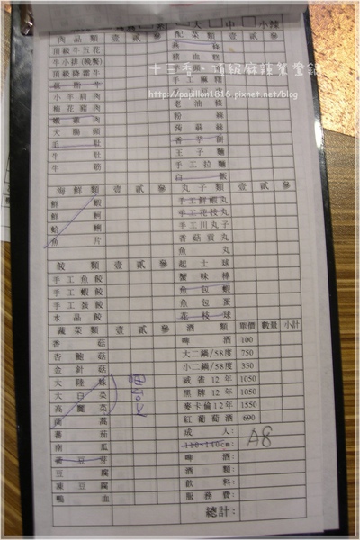 這回因為朋友加薪,因此十分榮幸的獲邀享用慶祝PA,這次選定的是位於板橋府中的十三香麻辣,住在板橋又嗜吃麻辣的我,還是頭一遭來,事前上網做了功課,發現食材頗為豐富,整個就讓我期待了起來。